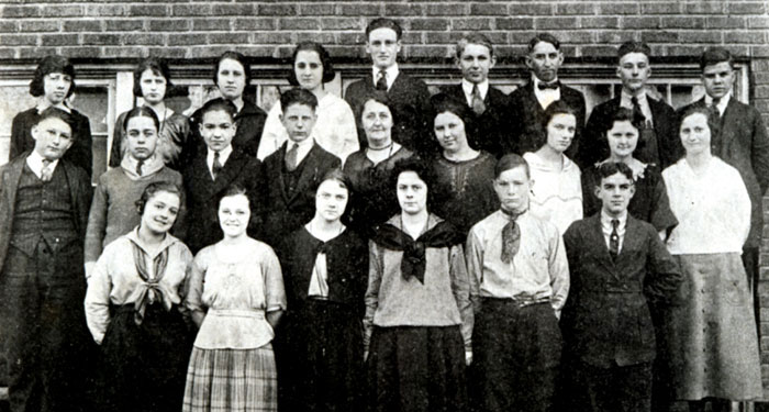 LEFT TO RIGHT, FRONT ROW: Violet Moraine, Leota Hall, Gladys Stine, Margaret Fry, Kenyon Arbogast, Lewis Jenks; ROW TWO: Raymond Harmony, Walter Jolley, Robert Speer, Ray Hansfelt, Miss Skinner (sponsor), Ethel Whitney, Luella Towsley, Bernice Joyce, Phyllis Kelley; BACK ROW: Kathryn Beckley, Candace White, Myrtle Hays, Frank Hamilton, Hearn Gudger, Wayne Hill, Clarence Swanson, Raymond Moore |