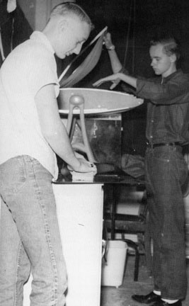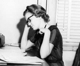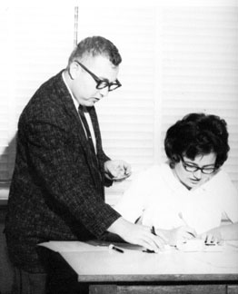 ![]() Kayleen Platz, associate editor, is explaining to Jeff Dunaway, photographer, how she wants a picture taken. Kay Milne, associate editor, is proof reading pages before the first dealine.