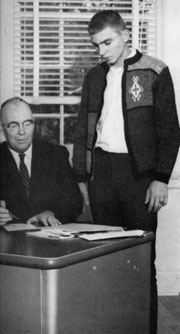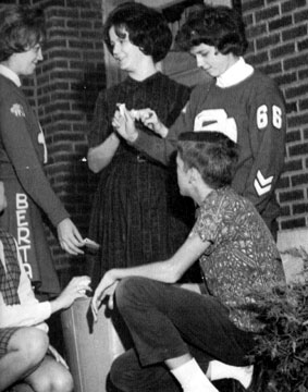 DIRECTION OF SCHOOL FUNCTIONS The Student Council was organized in the 1930's. It has been a member of the National Association of Student Councils for many years. The president was elected last Spring by all classes except the Seniors. The other members of the elected body, three Seniors, three Juniors, two Sophomores, and two Freshmen, were selected this fall by the students. These representatives must have maintained a 2.5 grade average. "The purpose of the O.H.S. Student Council shall be to uphold the school traditions, to promote school activities for the betterment of this high school, and to install a closer relationship between the pupils, the faculty, and the community." The Stuco has sponsored student activities by having parties, assigning basketball concessions to different organizations, sponsoring the Homecoming Queen Conests and appearances of students on radio and television. This past year the Council established a Safe Driving Program and published a student handbook called the "Tom-Tom". Stuco also attended a workshop at Lawrence and sent the President-elect to a workshop for Stuco Presidents. |