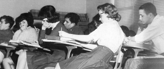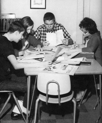 STUDENTS Not all school life was prearranged for the students. Throughout their four years of study they could participate in classes that met individual needs for all age levels. Students studied together, prepared meals, and sharpened their musical talents in band and chorus. These hours combined the talents of the intellectual, the anxiety of the awaiting, the strifes of the sturrgling, and the puzzles of the bewildered. All students reached to attain their goals and this was their finest hour. |