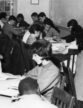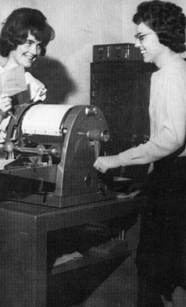 ![]() Secretarial students learn to operate the mimeograph and assembly booklets with skill. |