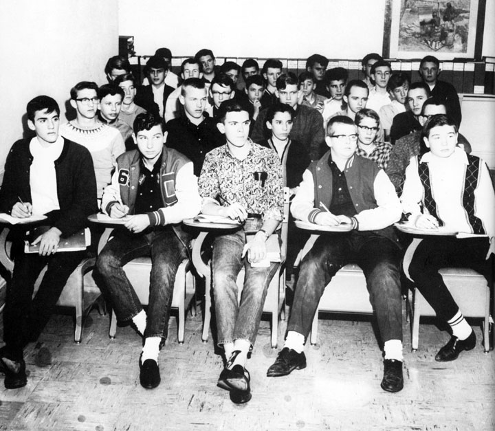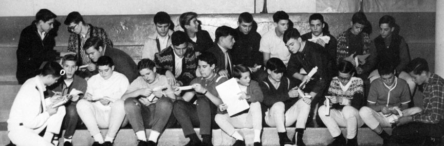 INSTRUCTIONS ON THEIR PLEDGE TEST. Those pictured are: FIRST