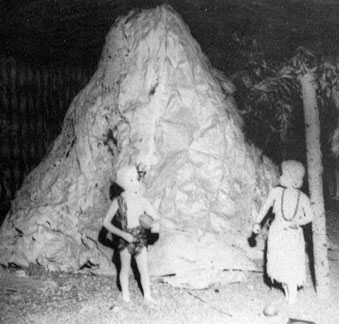 crepe paper covered the walls and ceiling. At the far end of