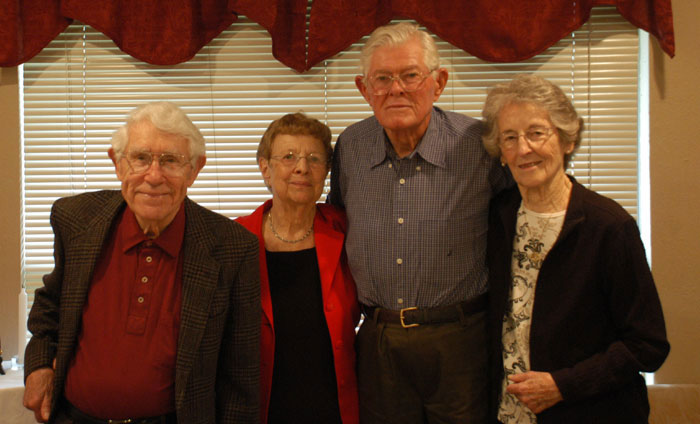 Observing their 75th reunion in 2011 LEFT TO RIGHT, Dick Schiefelbusch, Marie Skeens Shelden, Eugene Maxwell, Evelyn Slayman