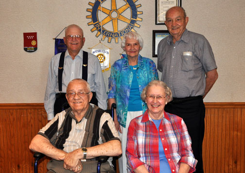 Observing their 65th reunion in 2010 LEFT TO RIGHT, FRONT ROW: Claron Cook, Mary Lou York Roberts; BACK ROW: Albert McKoon, Irene Riley Smitherau, Doug Estes
