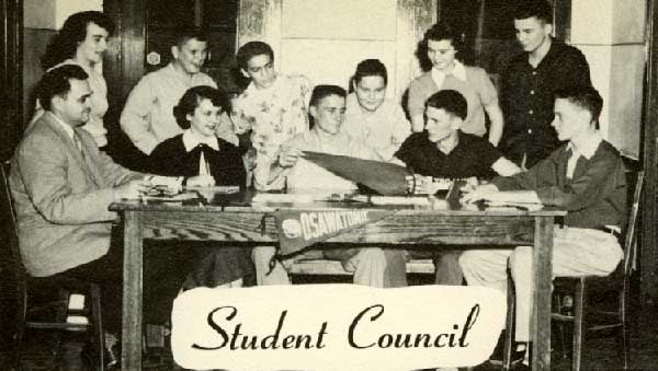 RIGHT, SEATED: Mr. Lyon, Shirley Parker - Secretary, Donald