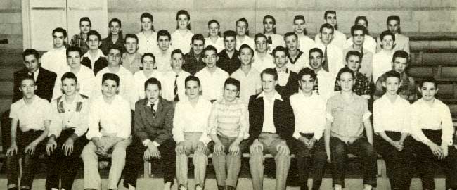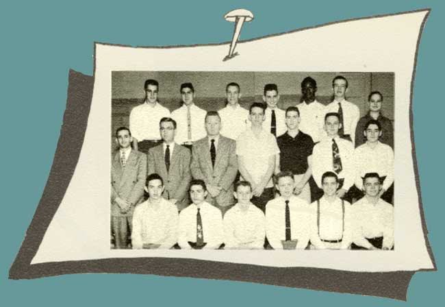 LEFT TO RIGHT, FRONT ROW: Tommy Walker, Richard Whitney, George York - Vice President, Jerry Austin - President; Tom McCourt - Treasurer, Pete Johnson - Secretary; ROW TWO: Sponsors: Ben Davis, Gilbert, Boone, Ernest Swenson; Roy Johnson, Richard McDowell, Eugene Caylor, Stanton Adams; ROW THREE: Lavelle Hays, Ernest Gould, Don Bratton, Harold Smith, Eddie West, Howard Barnes, Richard Sullivan |