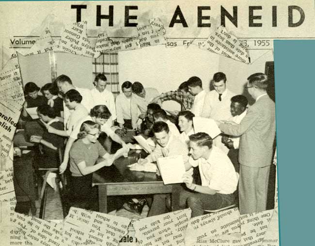NEWSPAPER STAFF: Jeanie Davis, Donna Wheeler, Elaine Elkinton, Jerry Austin, Charmaine Shell, Claudia Provin, Margaret Rawhut, Don Bratton, LaVern Lynn, Lewis Johnson, Tom McCourt, John Mooney, Eugene Caylor, Richard Chancellor, Cecil Deel, Junior Gould, Larry Fultz, Adrian Richards, Dannie Goodwin - Editor, Mr. Boone - Sponsor |