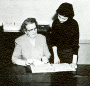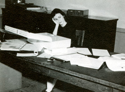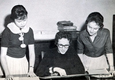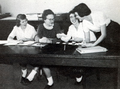 "Come on, Judy, tell the staff we have to meet that deadline!" exclaims Miss Mattingly, our sponsor. |