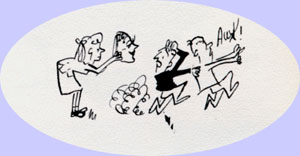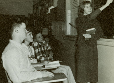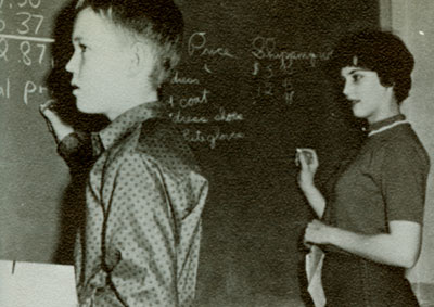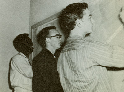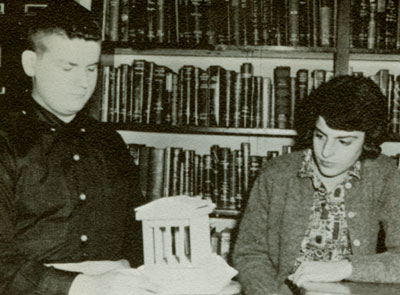 Looking at a model of a Roman temple are Leonard Cuddy and