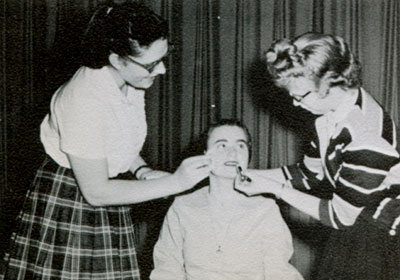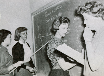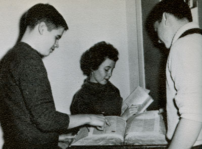 Doris Boehm, Joan Banister, Niki Hawkins are checking their