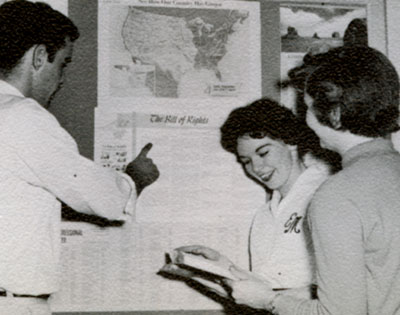 Discussing the Bill of Rights, are Larry Davis, Ellyn